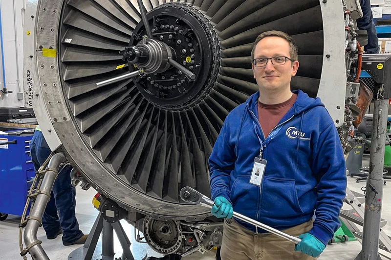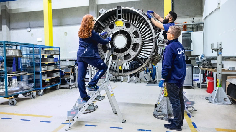 Eingebettet ist er in den EME Campus, eine der größten Trainingseinrichtungen im Netzwerk der MTU. Aufgebaut im Stil einer eigenständigen Servicewerkstatt kommen auf rund 4.000 Quadratmetern sämtliche Tools und Systeme zum Einsatz, mit denen EME Aero die Triebwerke der weltweiten Flotten instand setzt.