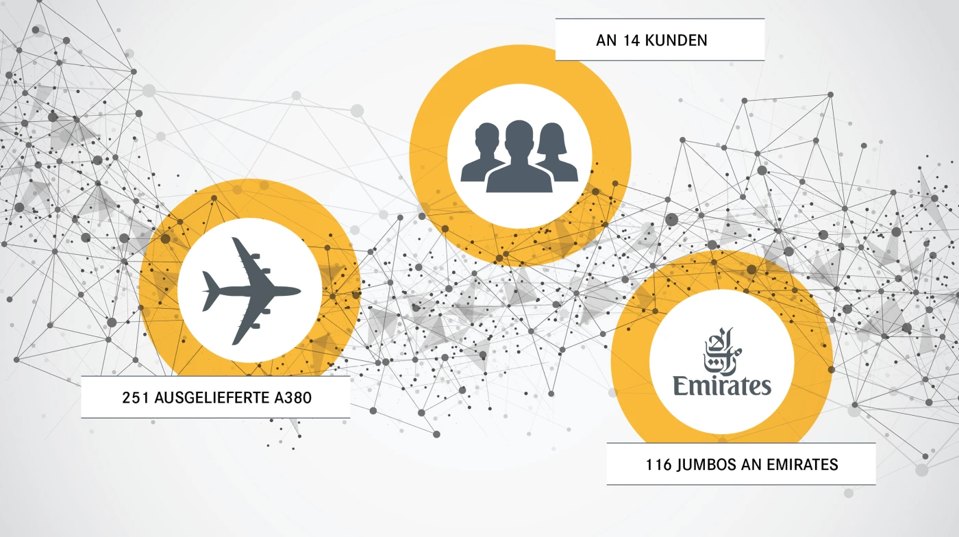 Bis heute sind 251 A380 an 14 Kunden ausgeliefert worden. Der größte Kunde ist Emirates mit 116 Jumbos im Dienst.