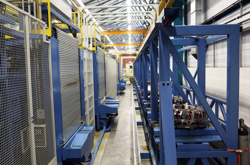 Ein TCF besteht aus drei Baugruppen, den Anbauteilen, dem Hub Strut Case (HSC) und der Flow Path Hardware (FPH). Die Flowpath-Hardware (FPH), also die Gussteile, die den gasführenden Kanal bilden, werden bei der MTU in München auf einer Fertigungslinie von insgesamt acht Bearbeitungsmaschinen gefertigt – Maschinen, die mit einem sehr hohen Grad an Individualisierung Teile bearbeiten, fräsen, schleifen, bohren. Mit Hilfe einer weitgehend automatisierten Beladung kann jede der Maschinen mit den Bauteilen und Werkzeugen versorgt werden. Dabei können die meisten Maschinen sämtliche in diesem Kontext benötigten Teile fertigen, was eine bestmögliche Auslastung der Anlage erlaubt.