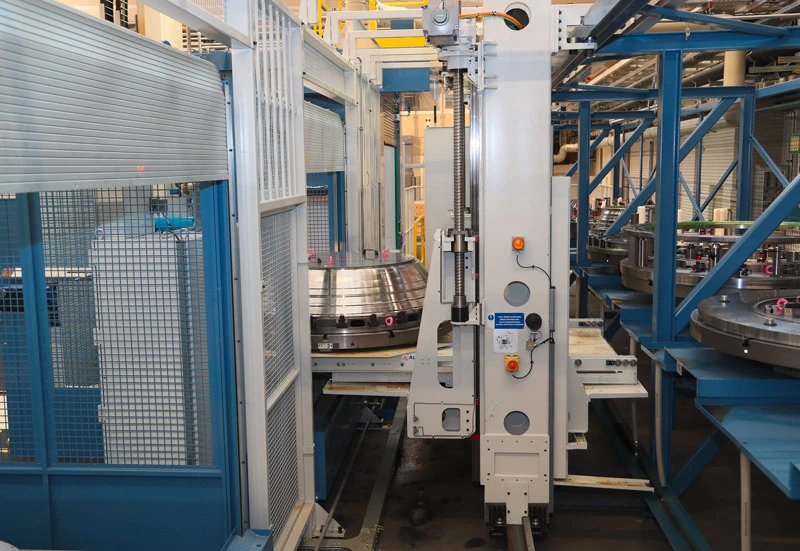 Zum Einsatz kommen 6-Achs-Bearbeitungsmaschinen mit integriertem WZ-Wechselsystem und passender Messtechnik. Zunächst wird jeweils das Werkzeug mit einem Transportwagen zur mechanischen Bearbeitung gebracht und dort in den Puffer geführt. Dieser Puffer ist zweigeteilt in einen Bauteilbereich und einen Werkzeugbereich. Das Beladen erfolgt entweder manuell oder über ein Beladungssystem, wenn es sich um größere, schwerere Teile handelt. Im Rahmen der Bearbeitung fährt das Bauteil in den Arbeitsraum. Ist der Puffer beladen, vollzieht die Maschine einen Identifizierungslauf und erkennt dabei sämtliche Teile.