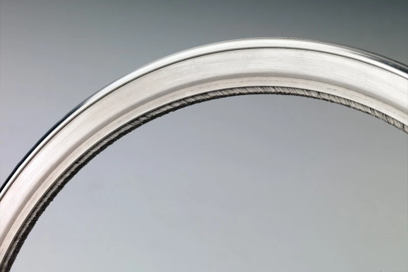„Zuerst wickeln wir die Drähte aus Haynes25 um zwei Kerndrähte, die durch ein Schwert gehalten werden“, erklärt mit Alfred Mayr ein Mann der ersten Stunde bei der MTU. „Mit dem sogenannten C-Rohr klemmen wir die Drähte am Kerndraht fest, entfernen das Schwert und erzeugen somit den sogenannten Doppelstreifen. Dieser Doppelstreifen wird in eine spezielle Glühvorrichtung montiert, um ein dichtes und definiertes Drahtpaket zu erzeugen. Durch das anschließende Spannungsarmglühen behält er nach der Demontage aus der Glühvorrichtung seine Form. Dann schneiden wir den Doppelstreifen in der Mitte durch und erhalten dadurch zwei Bürstenstreifen.“ Durch das Abrunden in eine kreisrunde Form wird der spezifische Durchmesser jedes Dichtungstyps hergestellt. „Jetzt müssen wir nur noch die beiden Enden des gerundeten Bürstenstreifen zusammenschweißen, natürlich so vorsichtig, dass keiner der feinen Drähte Schaden nimmt.“ Genau das war bis dato die zentrale Herausforderung bei der Produktion von Bürstendichtungen und hat viel filigrane Handarbeit erfordert.