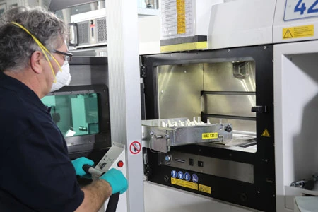 The new design has made it possible to cut the weight of the component by a third, without interfering with its strength or damping characteristics, according to Dusel. Hence, additive components help reduce engine weight, which reduces fuel consumption and therefore emissions. It will be a while before this point is reached, however. “Components such as these that are subject to intense stresses must be validated in engine performance tests,” Kraus explained. While this work is being carried out, his team and external experts are already conducting feasibility studies on completely new components that could be utilized in the Next European Fighter Engine (NEFE), and in the coming generation of Geared Turbofans™. “For the next generation of engines, we can envision using additive manufacturing for up to 15 percent of the components,” says Kraus. It is already clear, he continues, that in the future, engine manufacturers will not be able to survive if they don’t implement the new process.