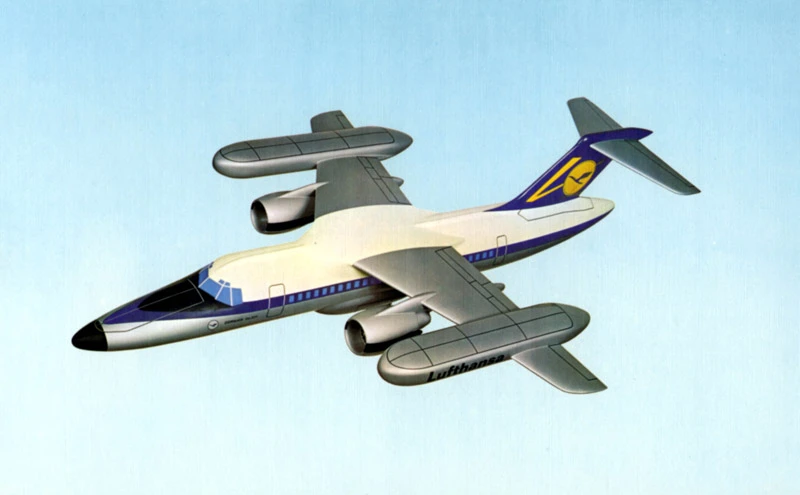 Artist’s impression of the commercial version of a vertical takeoff aircraft for 80 to 100 passengers that was planned in 1969. Lufthansa was interested in the proposed Do 231.