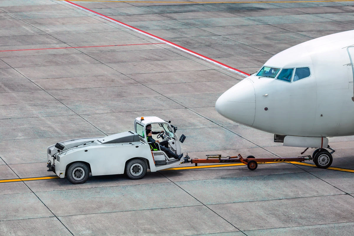 “Push” back: Reversing an aircraft under its own power is associated with high noise emissions—plus the pilot can’t see behind the aircraft from the cockpit. This is why a pushback vehicle is used.
