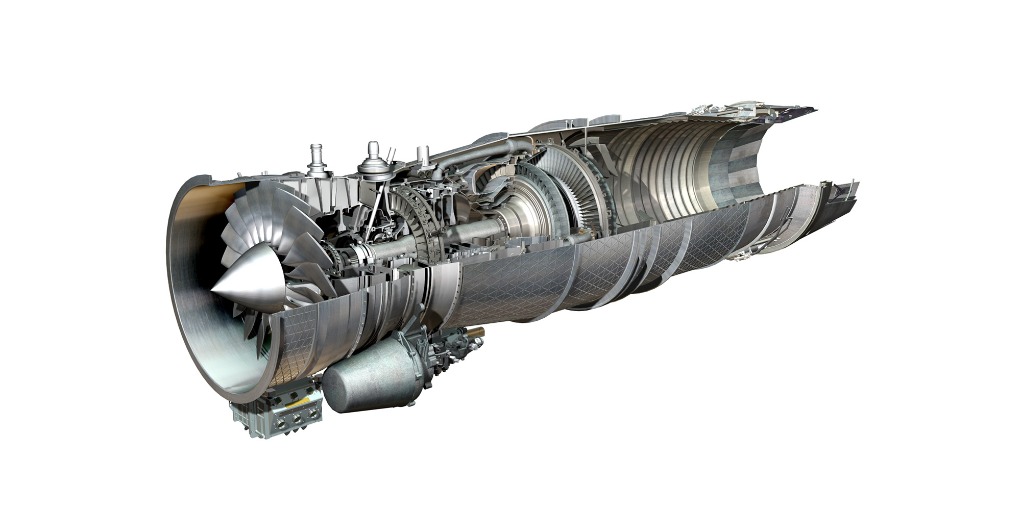 Next to a commercial turbofan engine with its giant fan, a sleek military turbojet looks almost a little lost. But in fact they function in basically the same way: air is compressed, mixed with fuel, and ignited. This generates an enormous amount of energy, which both drives the turbines and provides forward thrust. However, the requirements for the respective engines couldn’t be more different.