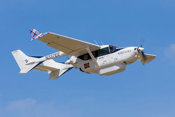 Hybrid flight: The hybrid-electric Ampaire 337 is a converted Cessna 337. Ampaire plans to launch a ten-seater Cessna Caravan powered by an eco-friendly engine by the end of 2022.