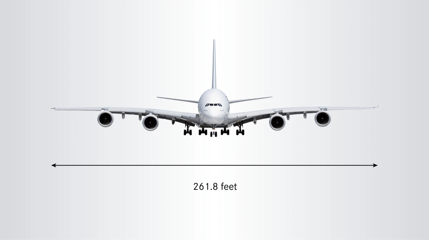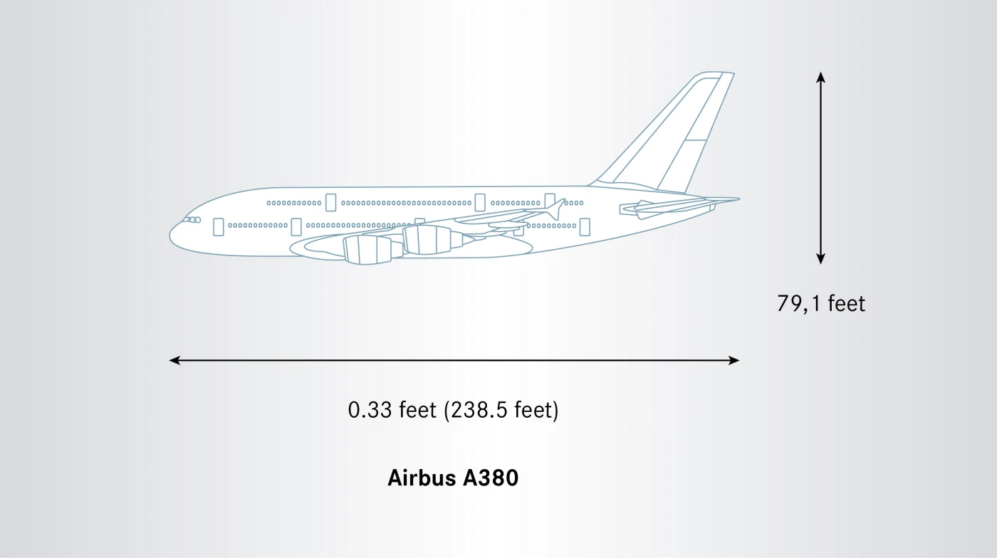 - As the world’s largest passenger aircraft, the Airbus A380 features impressive dimensions: a wingspan of 261.8 feet, a length of 238.5 feet, and a height of 79.1 feet. This makes it as long as two blue whales and as tall as five giraffes. During takeoff, the wings flex upward more than four meters.