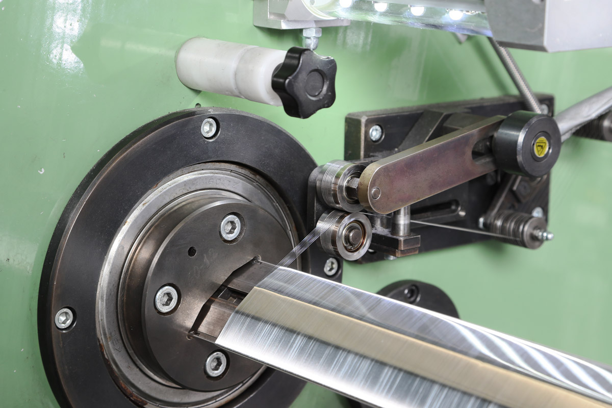 A slight gust of air and this wire would fly away. Its diameter is a mere 0.07 millimeters; even the parchment paper used in baking tends to be thicker. That’s why when the machine draws this wire, multiple strands each time, onto a winding blade, it does so under a protective case made of safety glass. Multiple work steps later and the wire will still fly away—only this time as part of a brush seal installed in, say, a PW1100G-JM engine powering an Airbus A320neo.