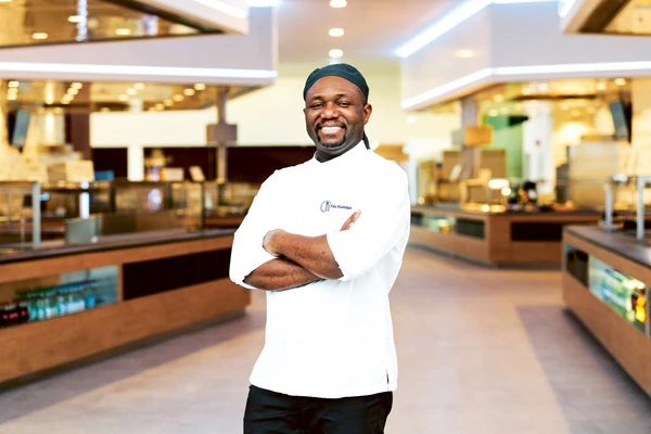 All the kitchen equipment at the recently completed site addition is top of the line. Food is served at four counters: “Local & traditional,” “Salads & grill,” “Pizza & pasta” and “Wok at work”. “We expect to serve 1,500 to 1,700 meals a day and plan accordingly,” Fini says as he organizes the refills at the “Local” counter. Today, his team has seasoned, breaded and cooked 900 schnitzels.